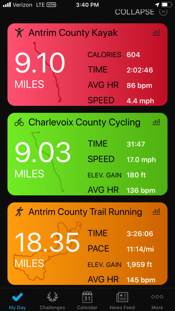 So even at a very slow pace of 14:09/mi I’ve got the daylight I need! I think keeping the pace below 12 will be a good goal. My 31 mile pace on the Poto (which is actually hillier – Poto – 31mi = 3,035 ft gain, Pictured Rocks Trail – 42mi =2,267 ft gain) was 12:02 elapsed so if I can keep that for the first 31 I should be good.