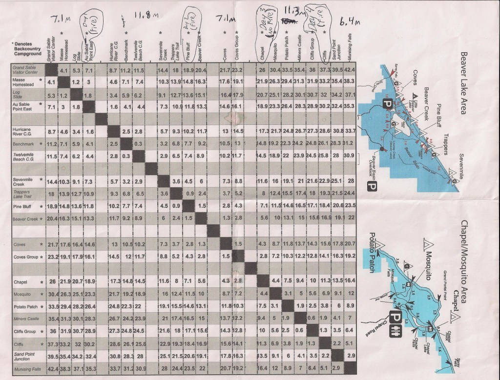 The trickiest spots are in the middle. 12 Mile Beach is aptly named with at least an 8.9 mile section to Beaver Creek with quite the trek from the parking area. Then Chapel Beach and Mosquito Beach are as equally far from each other as they are from the parking area. Seems like Patrick joining me from 12 Mile Beach to Mosquito Beach or even Miner’s Castle might make the most sense but that’s a lot of miles. Alexis will start and go 5 or so. Ryan will finish the last 10? All of this is subject to argument and change!
