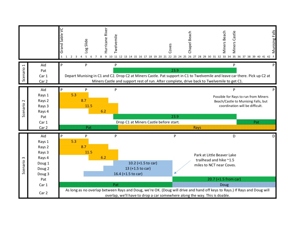 Patrick, pacer extraordinaire, engineering marvel, and ultra-running comeback kid, will be helping along the way and running a portion with me. Ryan and Alexis are also joining to make sure I don’t start too fast and that I finish without falling off a cliff. Here’s the info all in one place for Patrick and the team to work their magic!